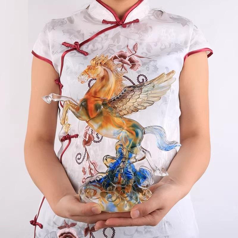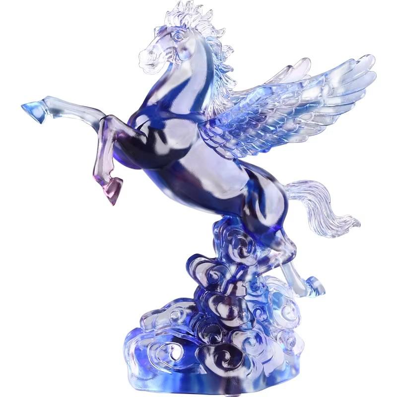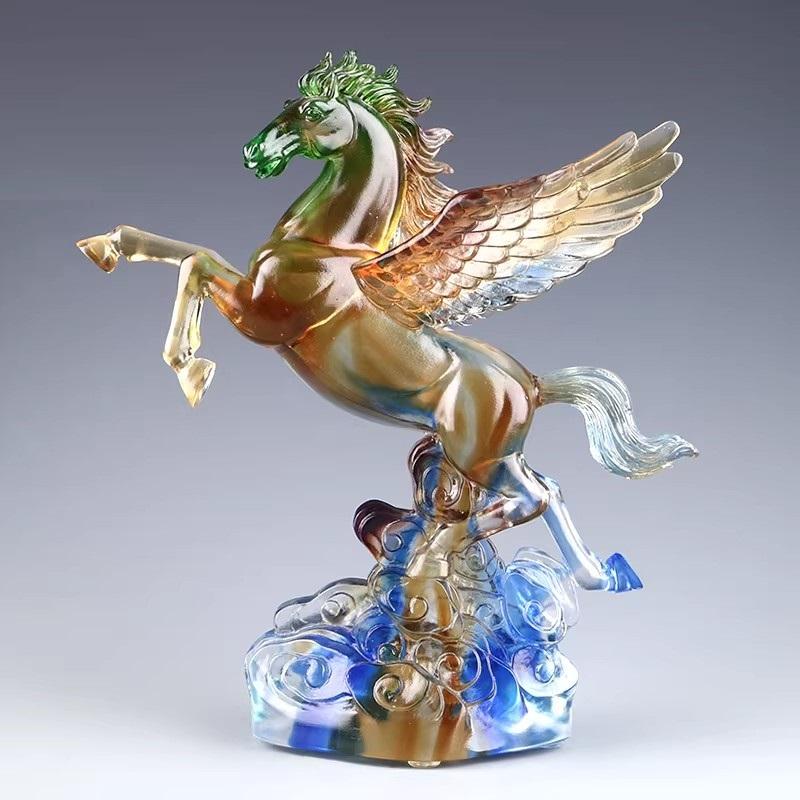 当这古老而神秘的非遗琉璃,与充满活力的飞马形象相遇,便诞生了古法琉璃天马行空大飞马摆件,给人带来强烈的视觉冲击和心灵震撼。