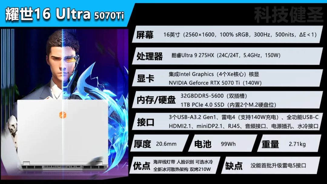 本期视频的主角,则是耀世16 Ultra家族中武装RTX5070Ti独显的低配型号,虽然补贴价格低至9999元,但仍保留了享受水冷散热的可能,无论是用料设计、颜值光效、硬件配置还是性能释放都是同阶位竞品中的佼佼者。