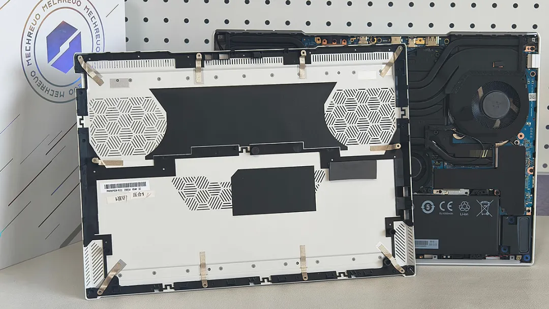 耀世16 Ultra的底盖也是白色,带有大面积散热开孔,拧下10颗螺丝就能轻松开盖。