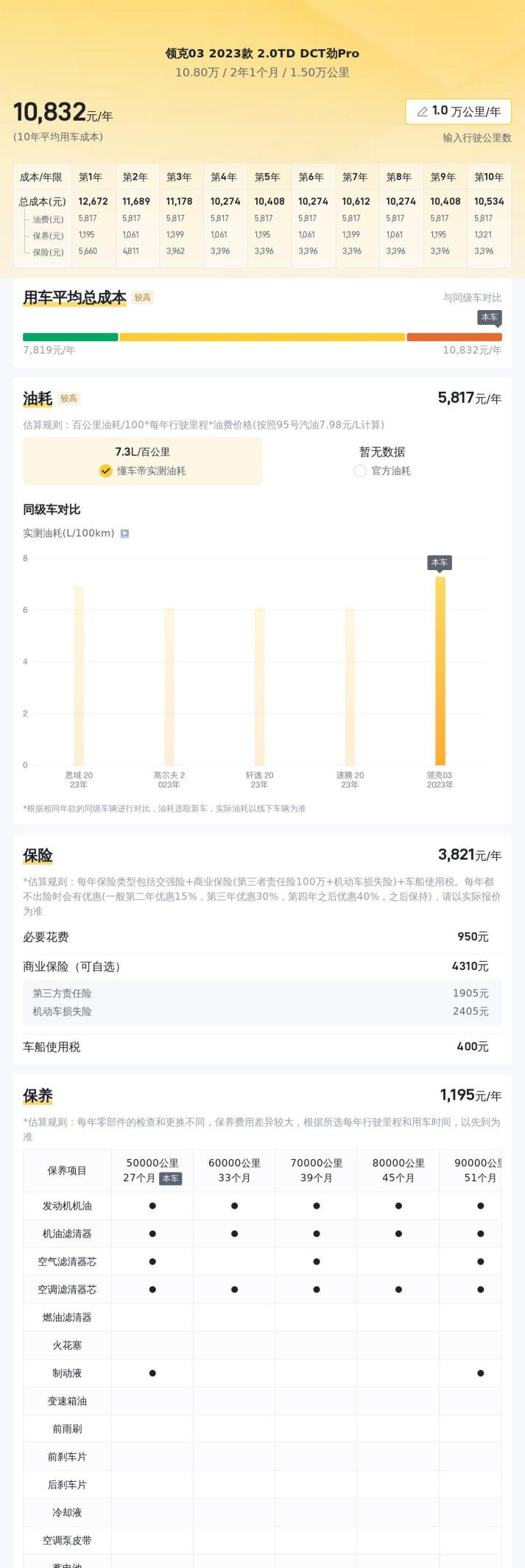 第五是后期维护成本。领克的保养费用相对来说不算太高,而且这辆车的里程数还很低,短期内不需要进行大的维修保养,后期的维护成本也比较可控。