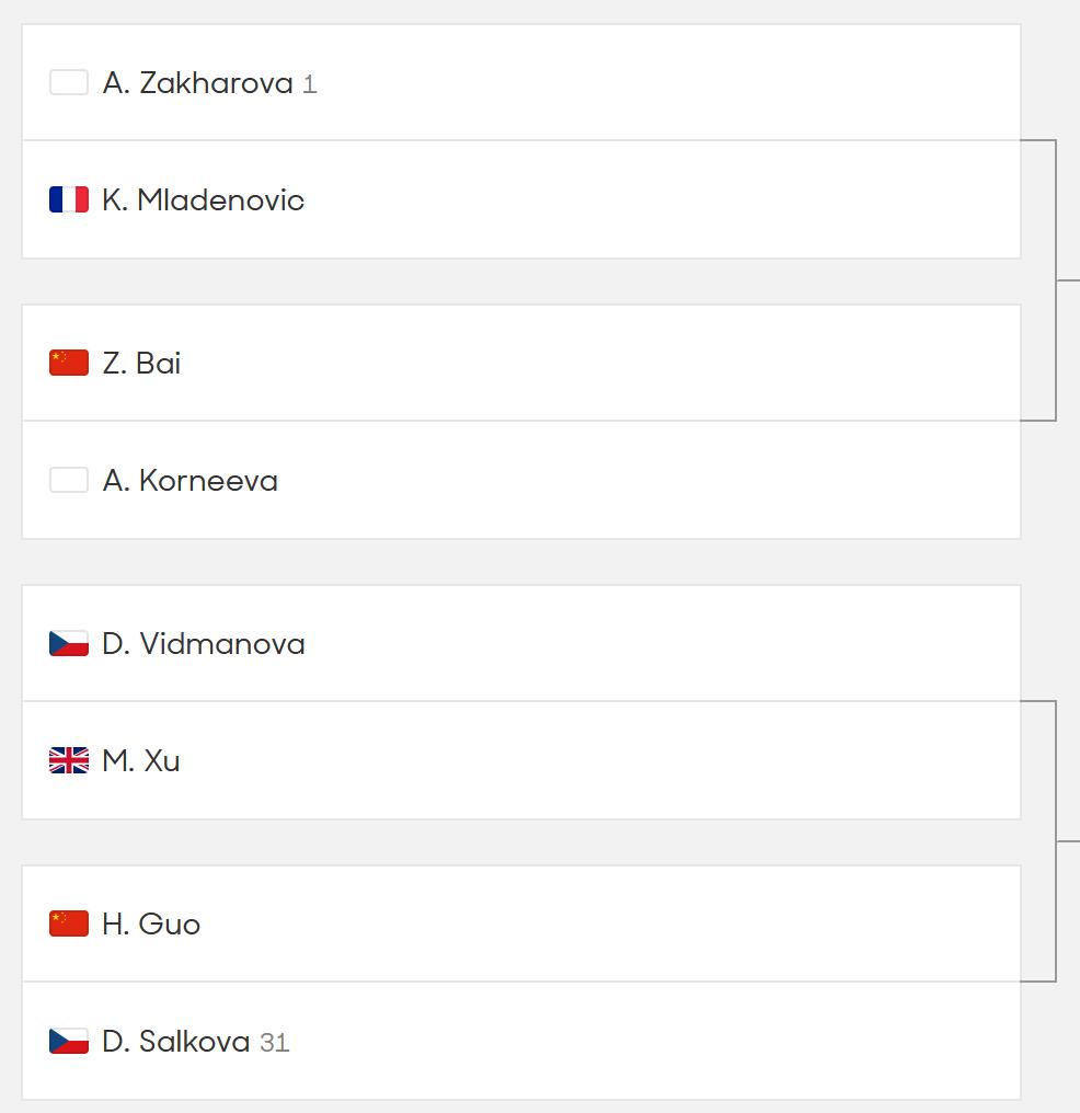 同在一个分区的还有郭涵煜,她将在首轮对阵31号种子萨尔科娃。若晋级,次轮对手将在英国球员徐铭格与维迪曼诺娃之间产生。