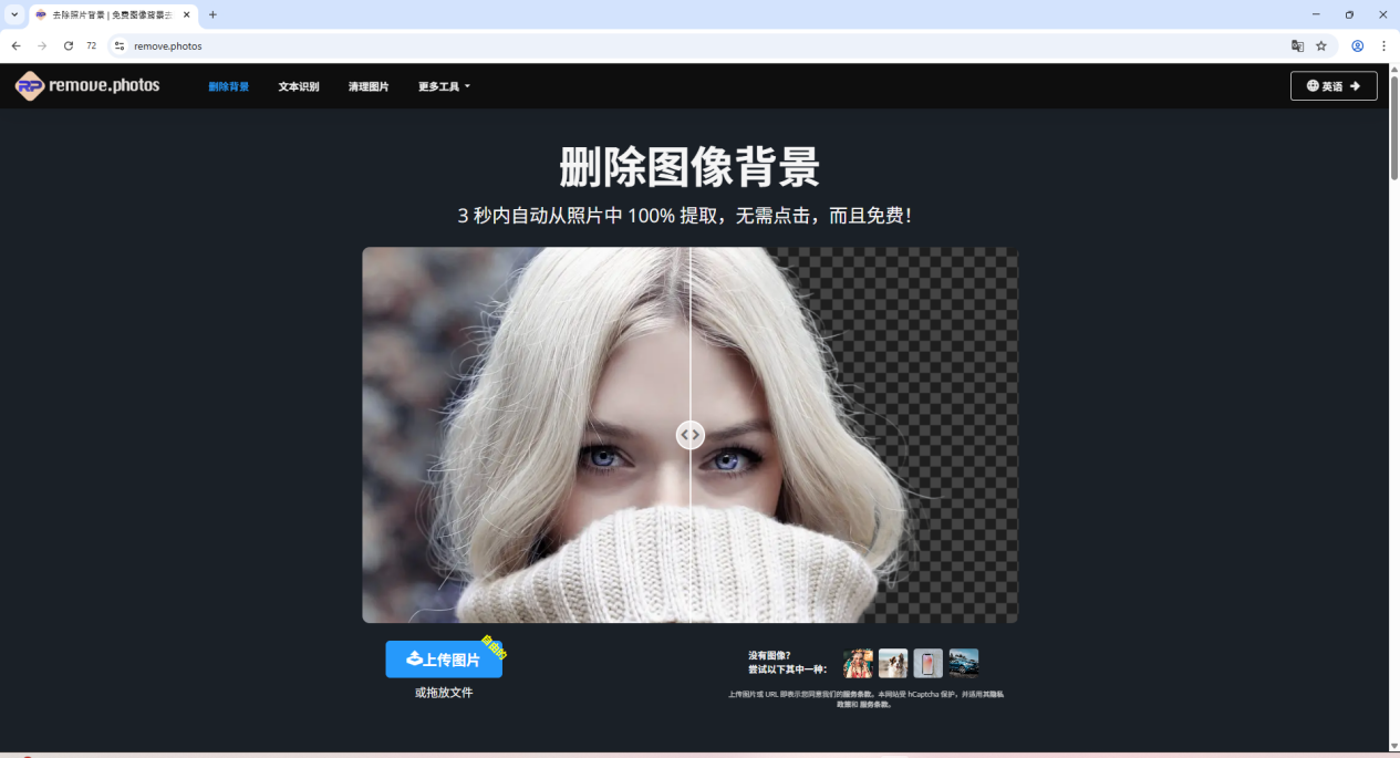 3、remove.photos这是一个完全免费的图片编辑网站,里面包含了一键抠图,黑白图片上色、在线消除、天空更换、智能扩图等十几种功能。比如我想把图片去掉背景,只需要上传一张图片,等待他处理完成就能看到处理好的图,然后再对比一下,看看效果没问题,就可以直接下载了。