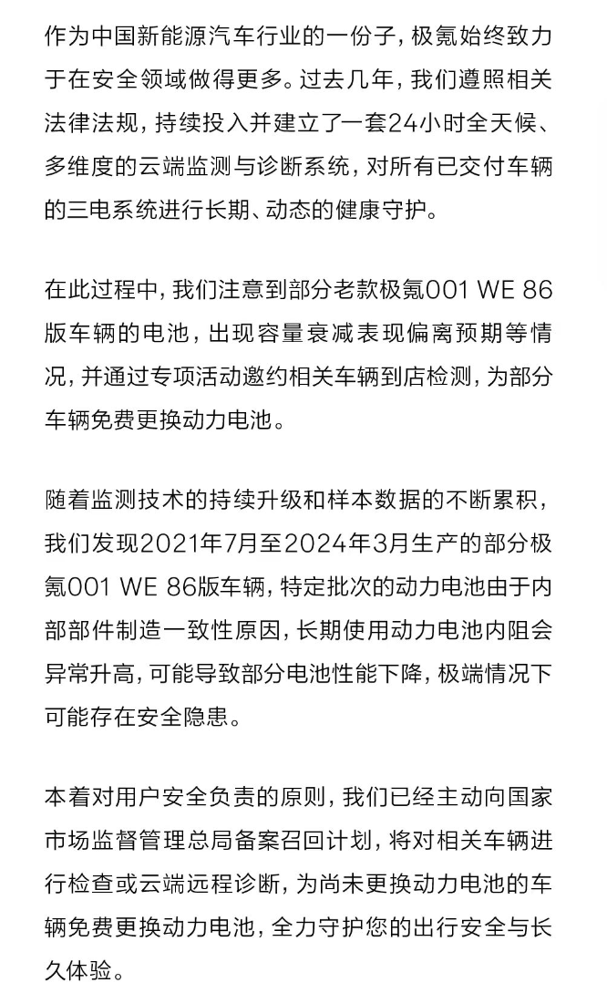 最近的极氪,因部分001车型的电池电芯可能存在问题,直接拿出了“免费换电池”的方案。值得玩味的是,虽然出问题的电芯来自供应商欣旺达,但极氪没让车主自己去和供应商拉扯,而是自己先把全部成本扛了下来。这种“先给车主搞定,再关起门来和供应商算账”的做法,效率高,行动快,关键还干的是实事儿