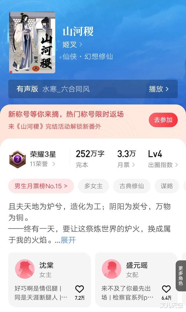完结均订接近五万,对其后宫文感兴趣的可以试试。最近《乱世书》的十万订庆典活动也在开启报名,有兴趣的可以留意一下。