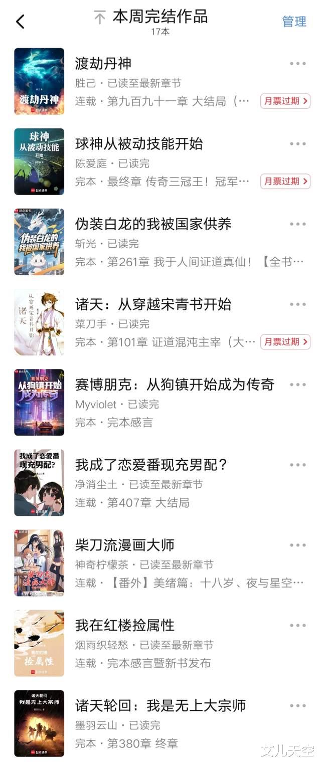 以上就是这周完结的一些小说了,我也多是浅尝辄止,如果其中有大家十分推荐的,欢迎说说。