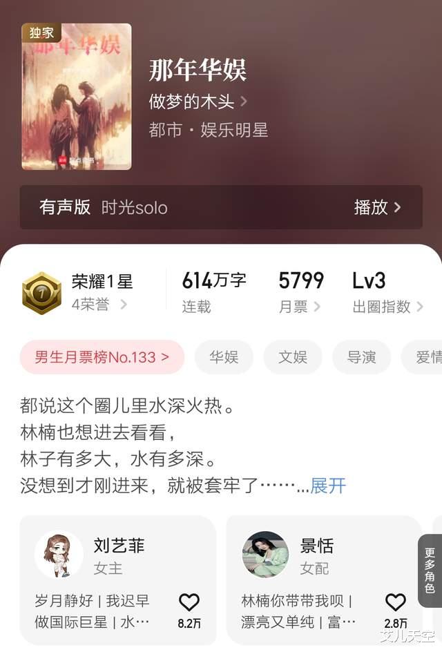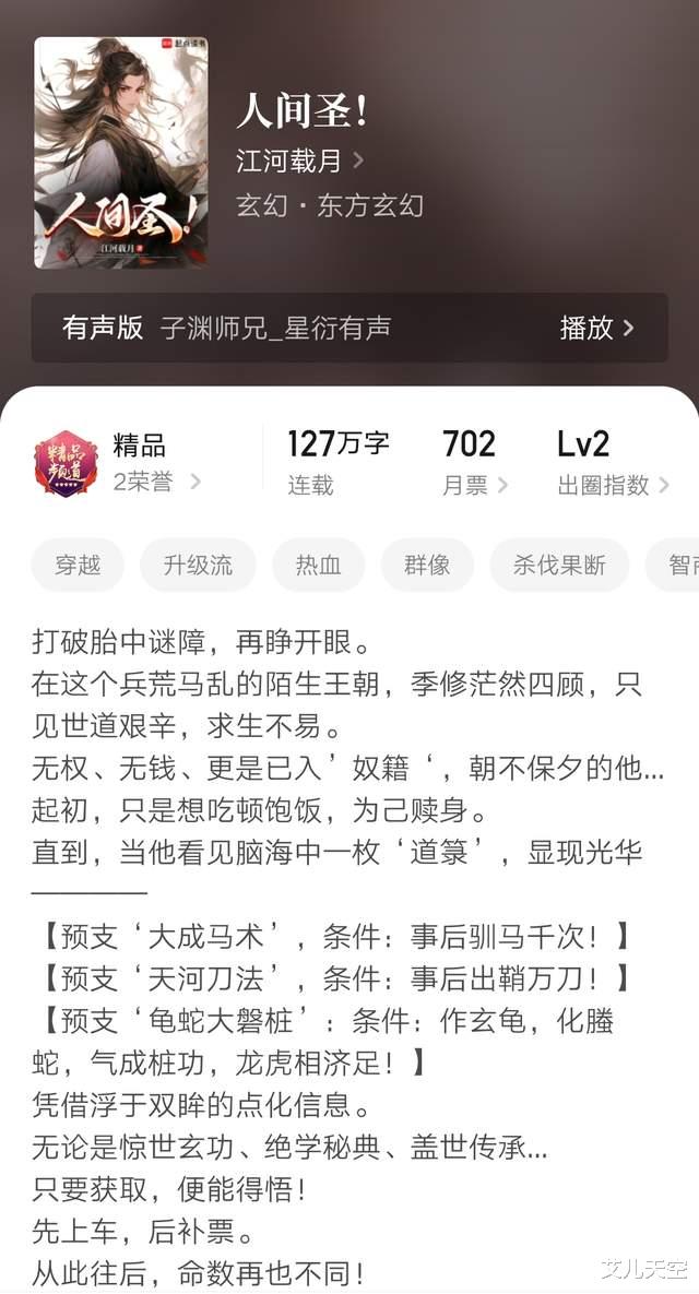 小说成绩六千大精品以上,原先看着是有万订潜力的,还是挺可惜的。