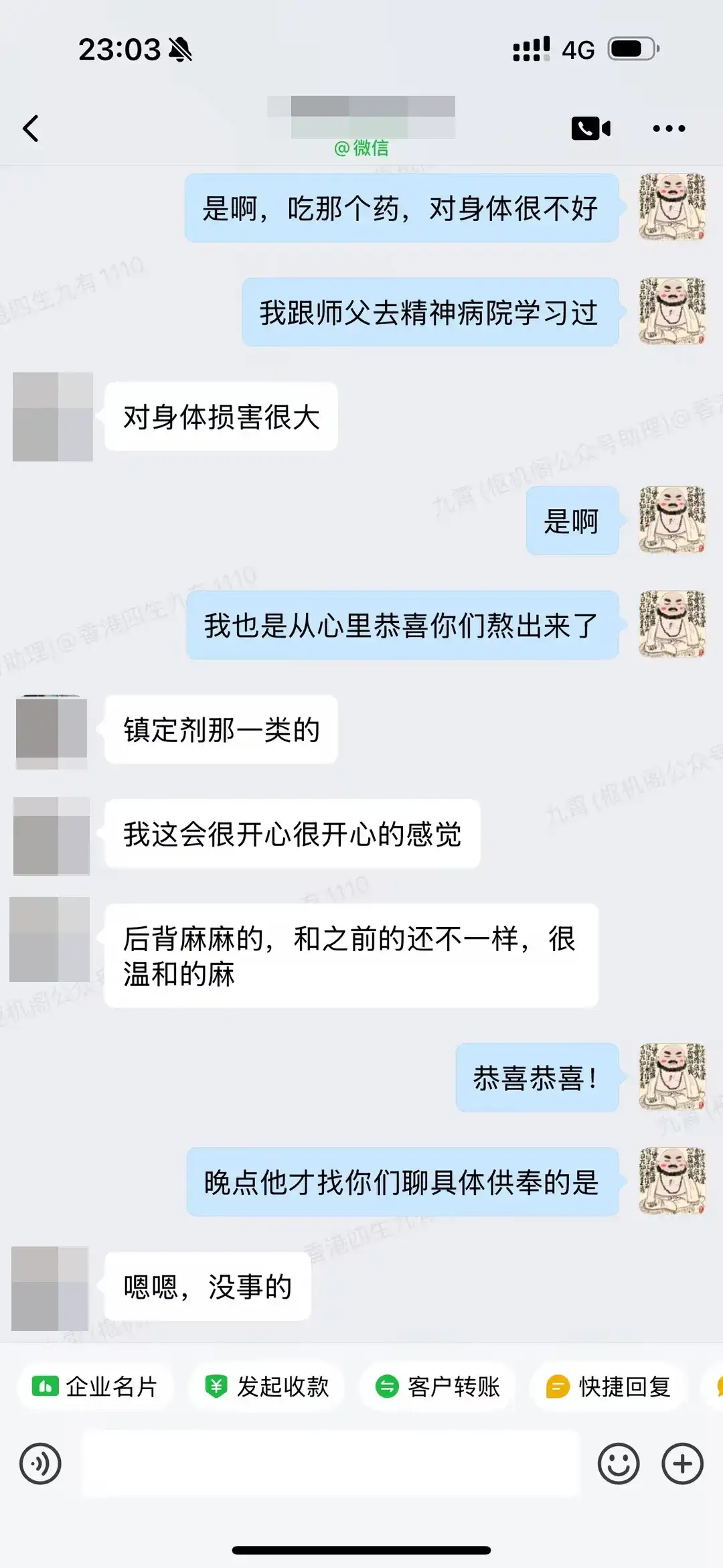 这个阶段,即使你有所好转,你和你的家人也会大概率说你是心理暗示好了,要么就说是巧合,要么说自己吃完药,上来劲了。这都很正常,你也不用掖着藏着,真诚一点,你也少遭罪。你也不用怕我觉得得罪我,你不说,人性也是这样的,人只不过是会说话的动物罢了。