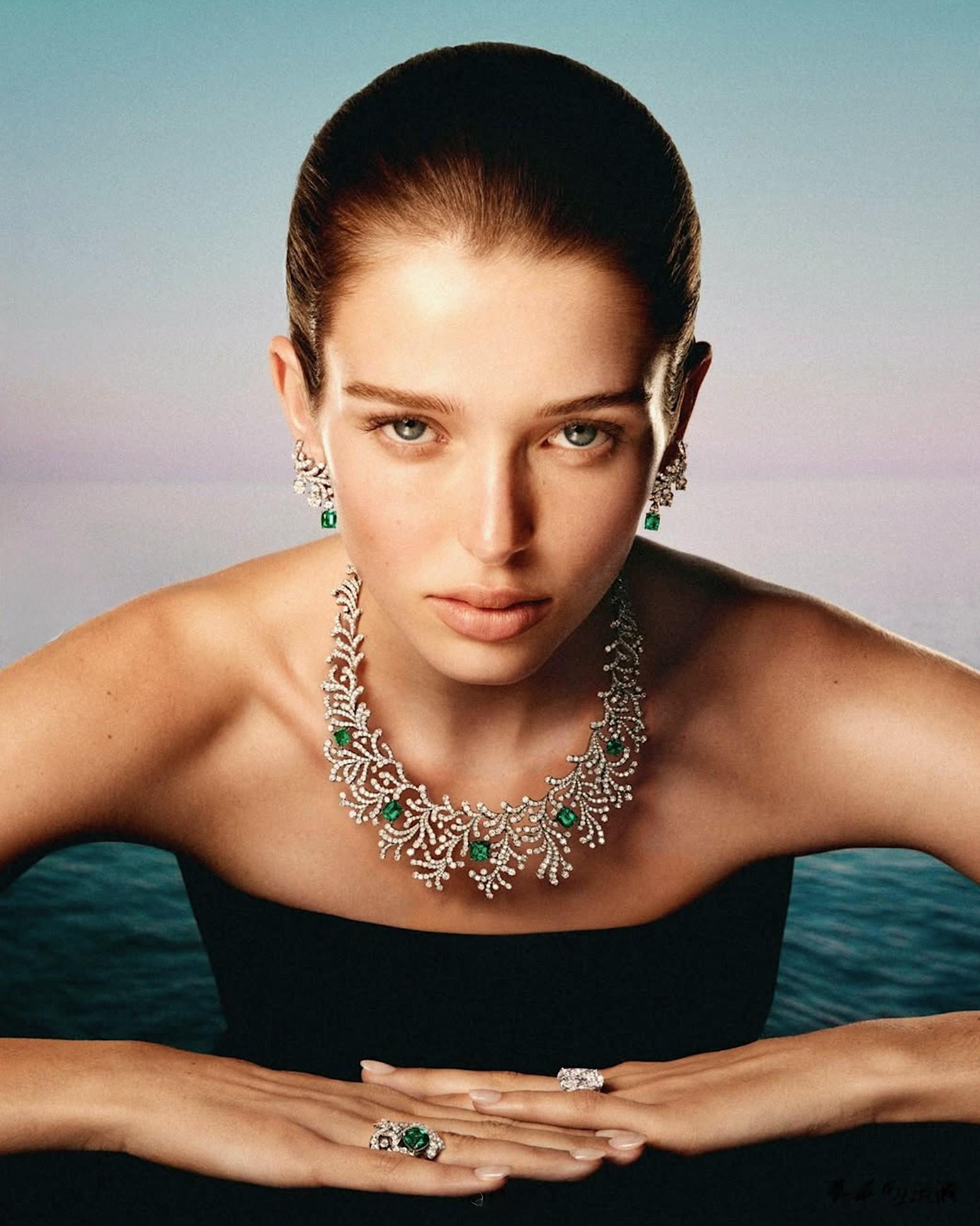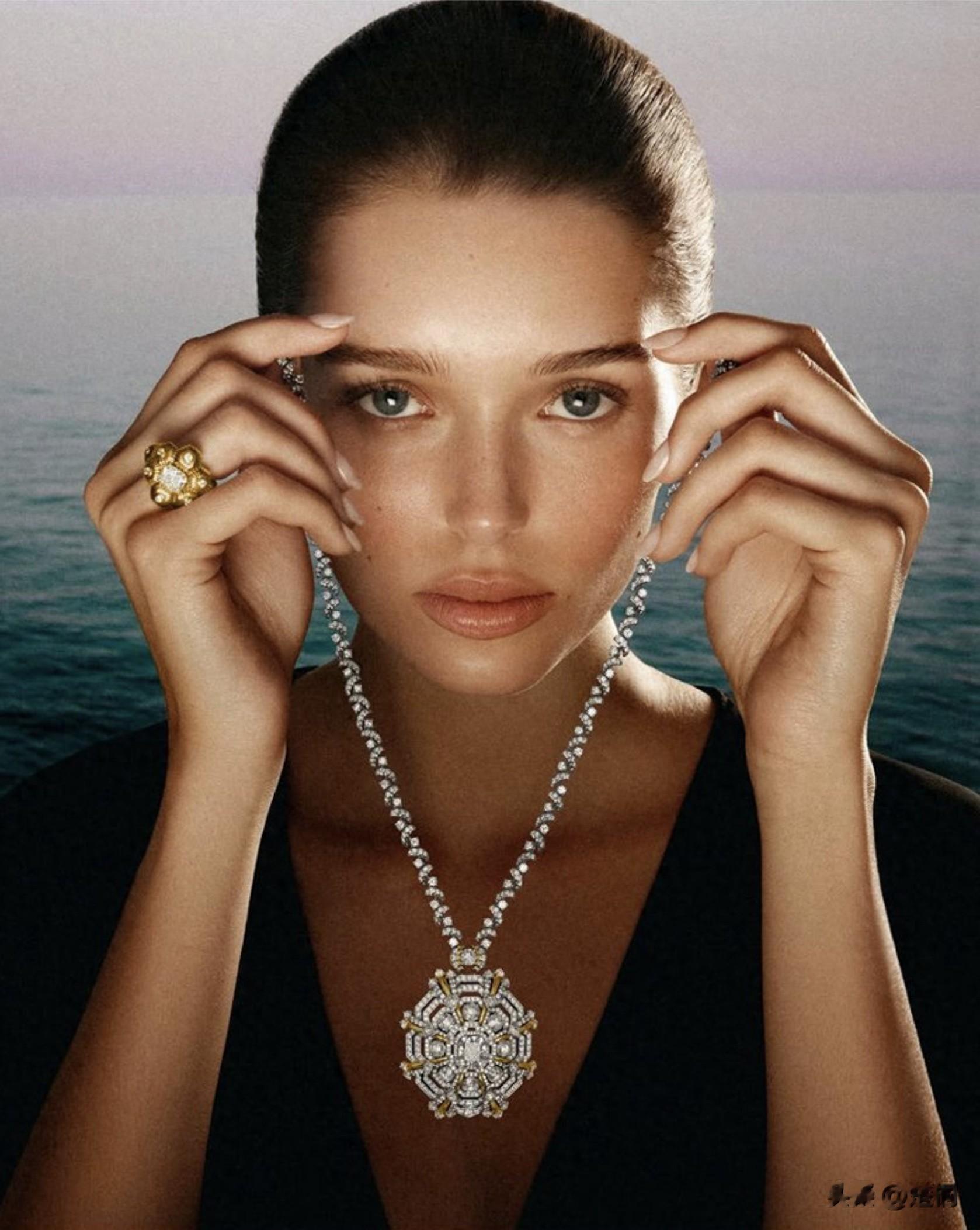 澳洲超模斯特拉·哈南(Stella Hanan)近日参加了蒂芙尼(Tiffany)高级珠宝展示宣传活动。蒂芙尼公司本次借由公布蓝皮书2025为契机,展示了名为奇迹之海系列的高级珠宝。本次展览在纽约大都会艺术博物馆举行。