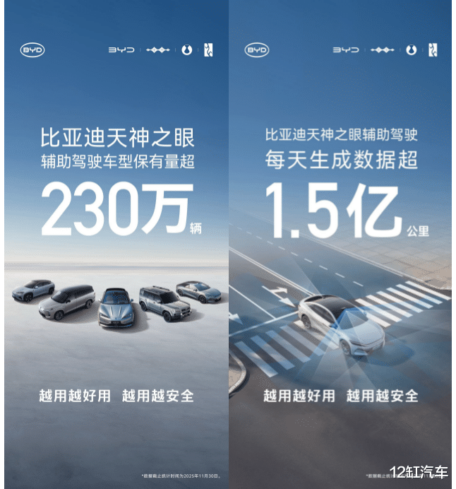数据显示,截至2025年11月底,比亚迪搭载“天神之眼”驾驶辅助系统的车型累计销量已突破230万辆,持续蝉联中国辅助驾驶车型销量及系统装车量榜首。这标志着比亚迪推动的“全民智驾”战略已取得显著成效,智能驾驶正从高端配置加速向主流市场普及。