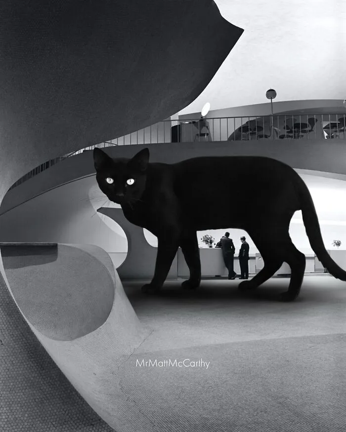 走进Matt的拼贴世界,你会发现,猫的魅力不仅在于它们的柔软和优雅,更在于它们能在最普通的场景中制造小小的“裂缝”。每一次惊鸿一瞥,都像是一剂“惊喜注射”,让人从惯性思维里跳出来,重新体会日常的奇妙。或许,这正是Matt想通过巨型猫传递给观者的核心:学会在平淡中发现趣味,让生活始终多一份不期而遇的惊艳。