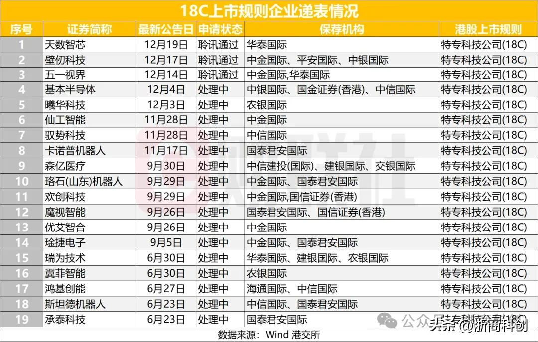 数据显示,港交所18C章特专科技上市制度正迎来企业递表高峰,2025年以来已有文远知行、滴普科技、云迹科技及希迪智驾四家企业通过该规则成功上市。据财联社记者不完全统计,目前以18C规则递表企业总数已达19家,其中,壁仞科技、天数智芯、五一视界已通过港交所聆讯。