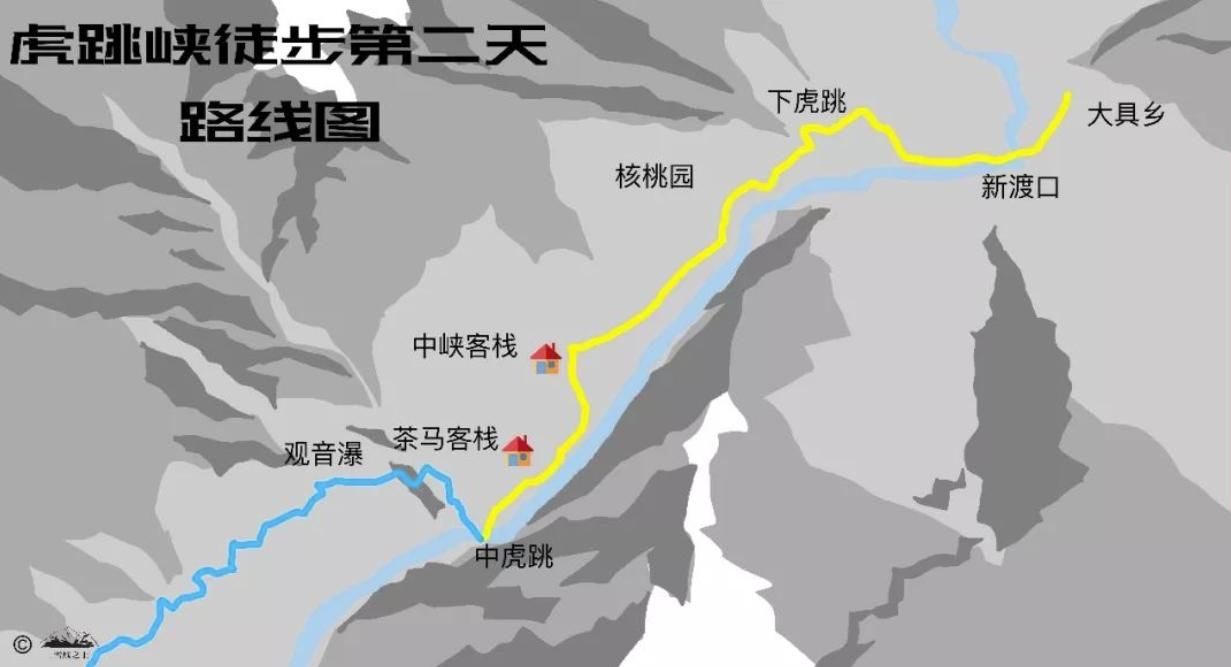 虎跳峡徒步起点—纳西雅阁—二十八弯—茶马客栈—Halfway(中途客栈),