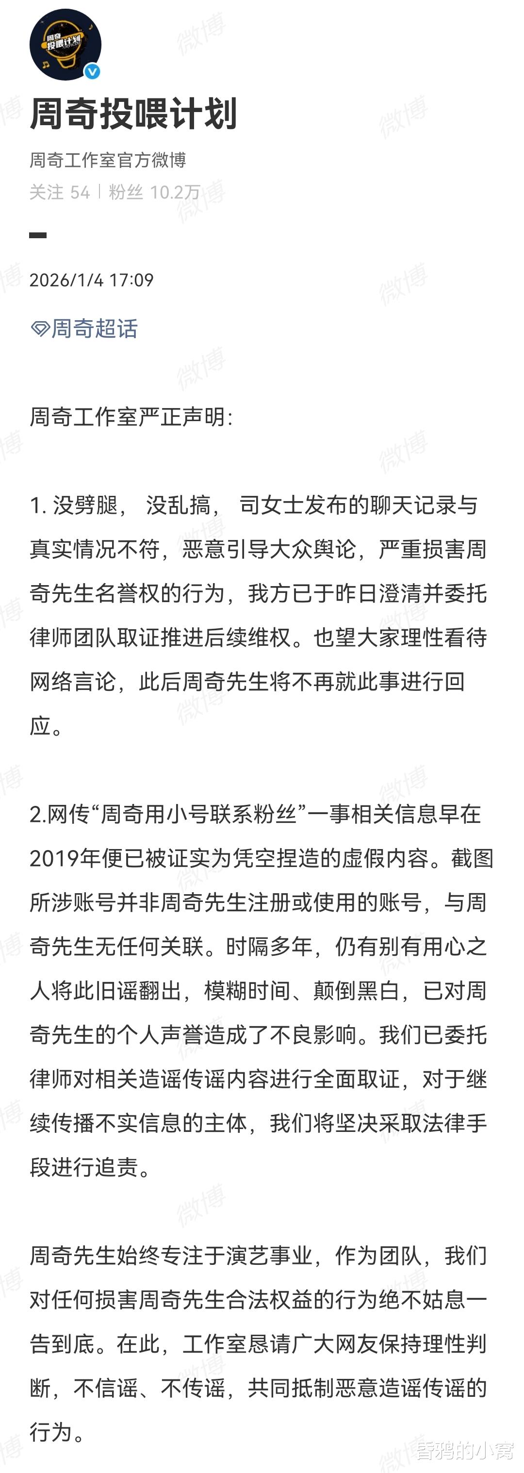 面对舆论风暴,周奇工作室仅紧急否认“劈腿”,却对与向涵之的关系避而不谈,这种避重就轻的回应不仅未能平息争议,反而加剧了公众的质疑。