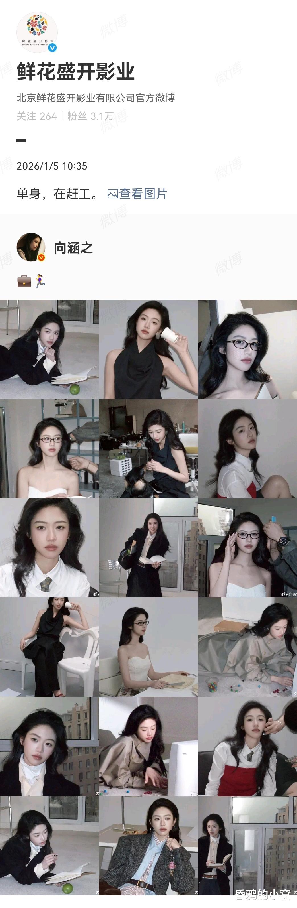 2026开年的娱乐圈,被向涵之的“光速单身”事件搅得沸沸扬扬。1月4日,她与周奇的同居亲密画面刚引爆恋情猜测,次日便被经纪公司“鲜花盛开影业”以“单身,在赶工”六个字直接官宣单身。