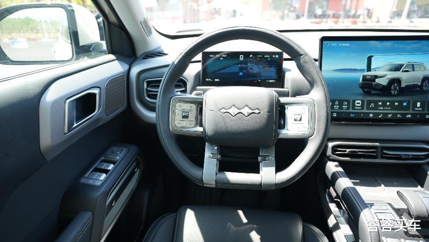钛3延续了方程豹家族的力量感设计语言,车身线条棱角分明,整体造型酷似“缩小版方程豹5”。