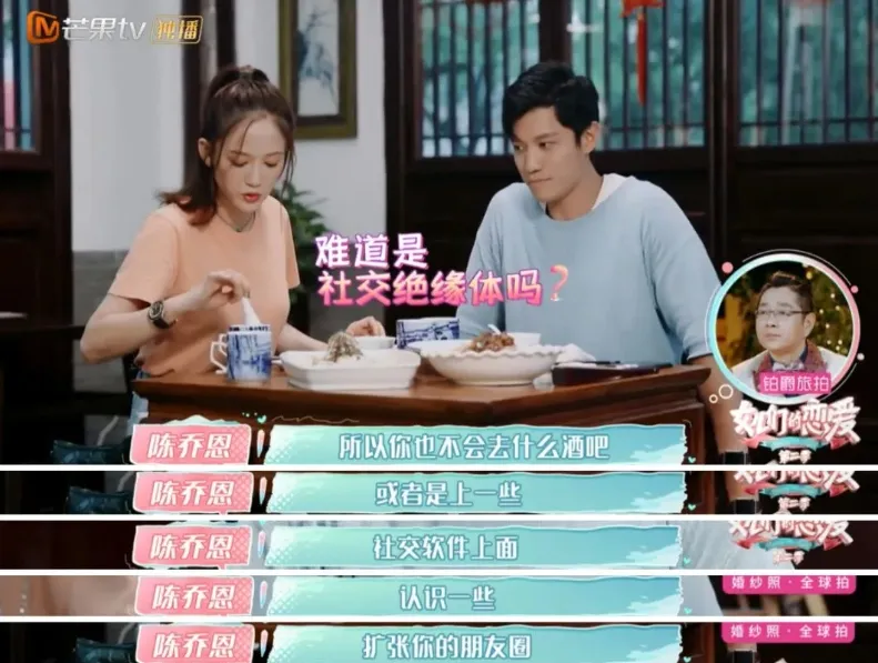 碰巧,节目组给陈乔恩安排的第一位男嘉宾就是艾伦。两人就这么一直聊着聊着,中途再也没有换过别人。