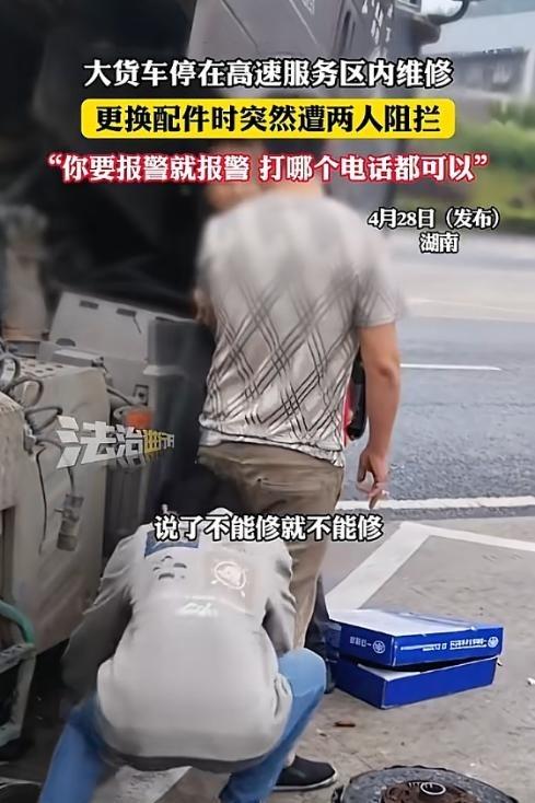 货车司机在湖南官庄服务区修车被阻的视频火了。两名男子趴车底抢零件、放狠话“报警随你便”的画面,直接把“服务区该不该管修车”的争论顶上热搜。网友翻出三年前吉庆服务区同类事件,发现那句“宁绕湖北三百里,不走湖南三公里”的顺口溜,至今仍在卡车司机圈流传。