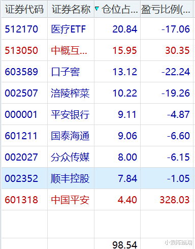 AI领域,openclaw/养龙虾,火爆这个周末,两会热议+产业巨头跟进+民间安装赚钱。它是开源的AI智能体框架;通俗讲,安装在本地电脑,能替你干活,比如做Excel、发邮件、代码编写等。说得更形象点,就像用千问点奶茶,现在是用龙虾帮自己工作。照这架势,3年内,和电脑有关的岗位,都会消失。二、本周交易1.小狼一号分众传媒,3月2日,6.75元,买入700股。合计持有1700股,占总仓位8%,浮亏6%。医疗ETF,3月4日,0.333元,买入15000股。合计持有86900股,占总仓位21%,位列第一重仓,浮亏17%。至此,此账户总仓位达到99%,几乎满仓。