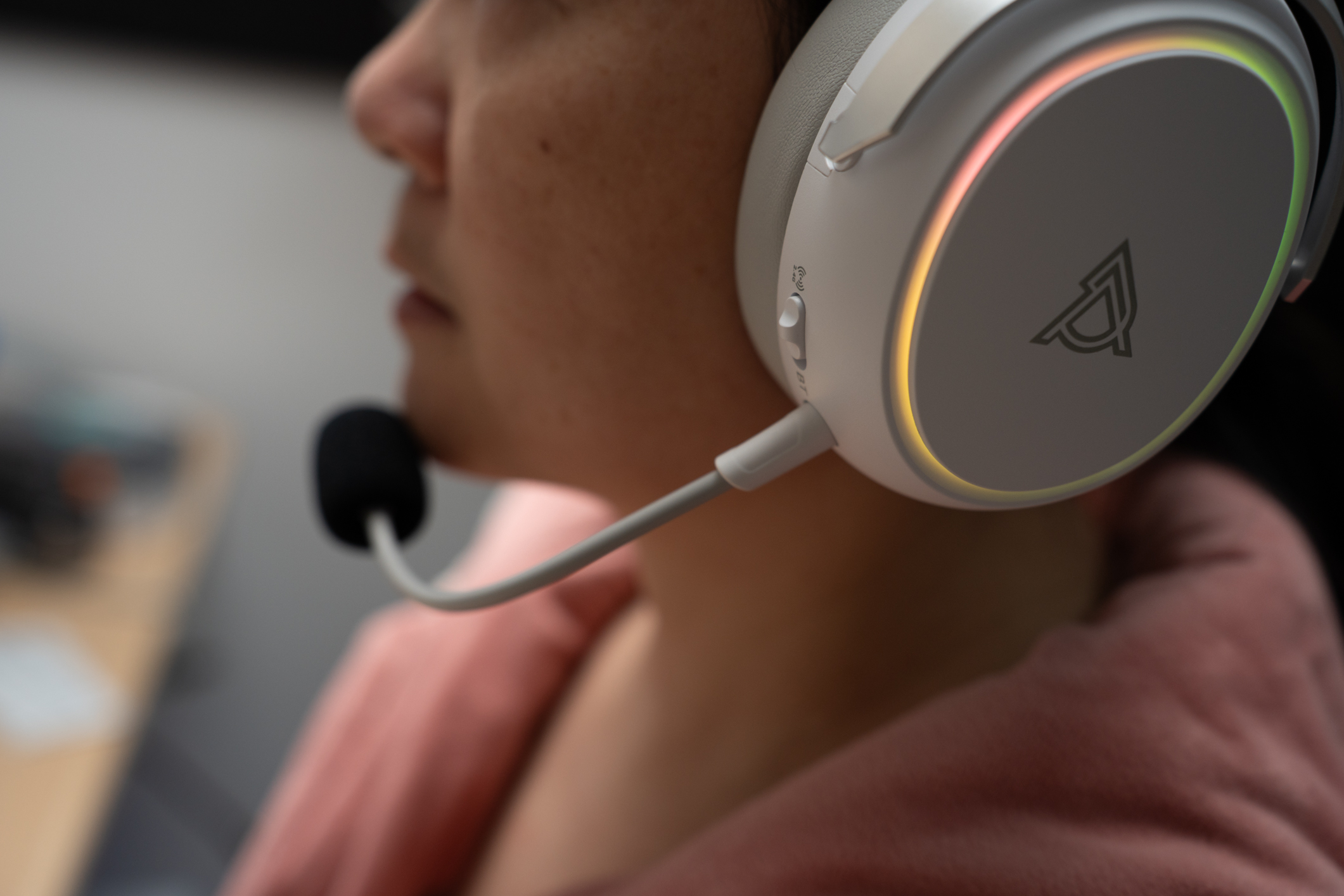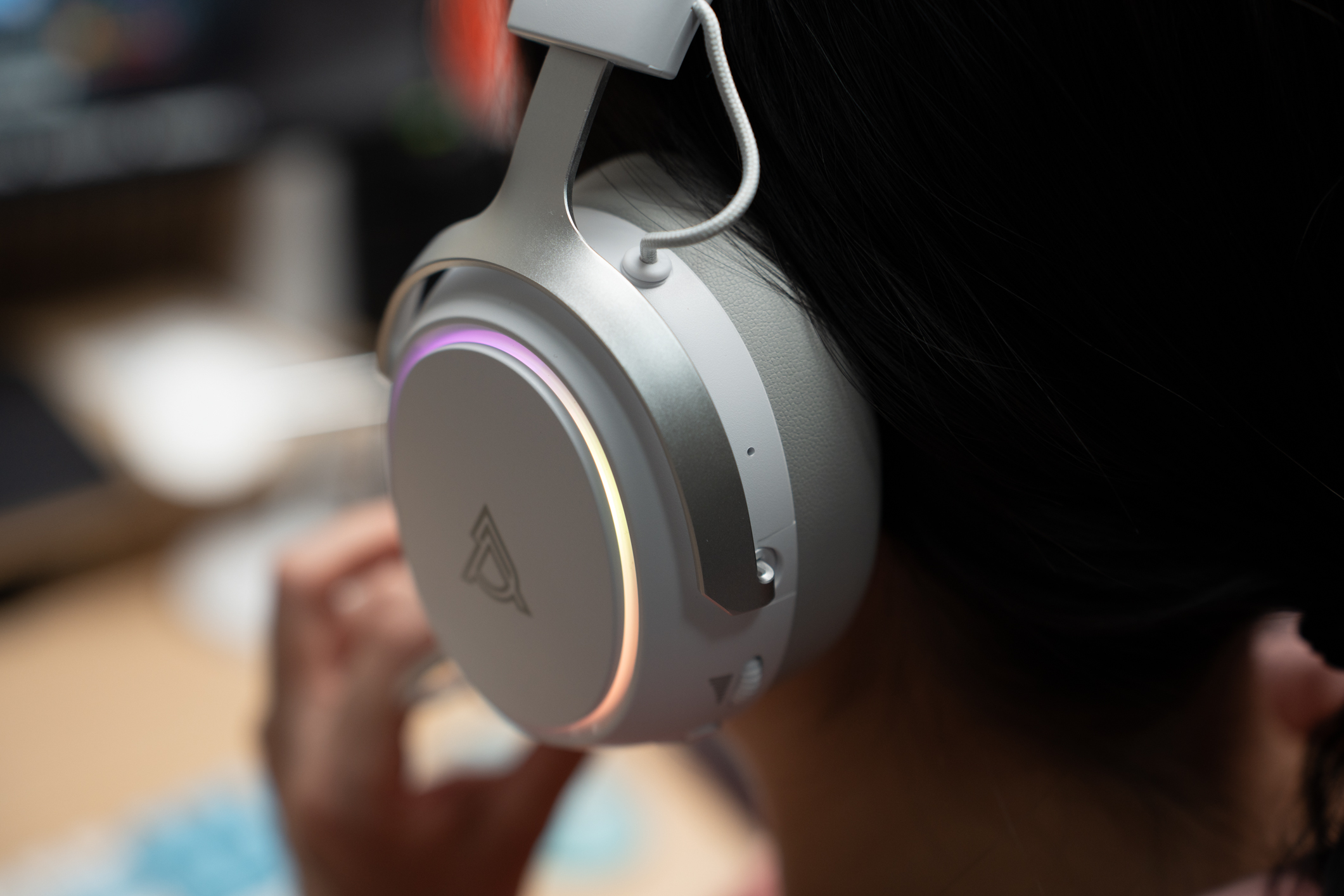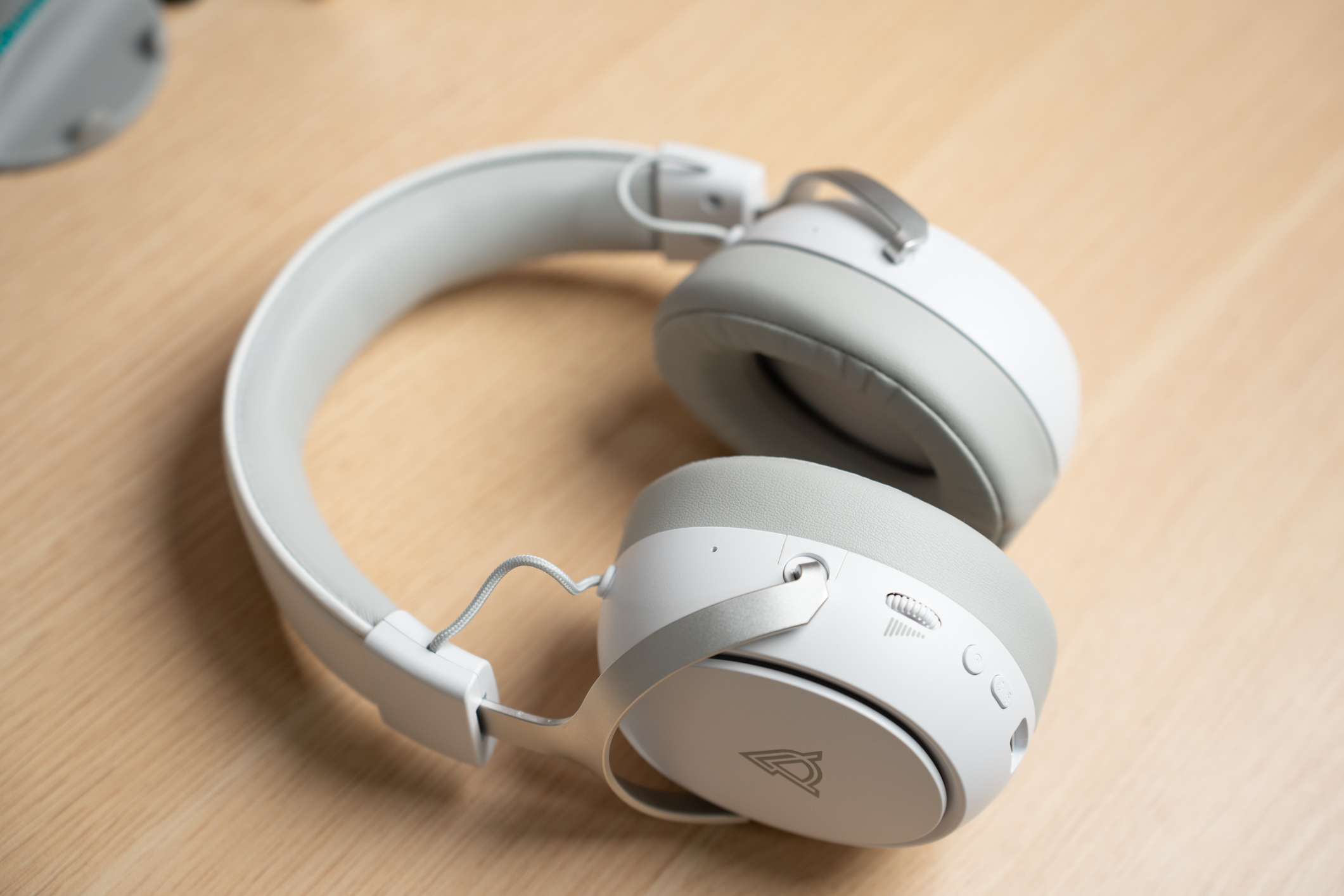 佩戴舒适度贴合日常,久戴无压力。耳机针对亚洲人头型优化,采用U型悬浮头梁设计,支持多档位伸缩调节,阻尼适中,佩戴时能贴合头部曲线,避免头顶压迫感。椭圆形耳罩可完整包裹耳朵,避免夹耳尴尬,蛋白皮耳罩亲肤细腻,内部填充透气记忆棉,实测连续4小时游戏佩戴,耳朵无闷热感,眼镜党也不会出现耳罩挤压镜腿的不适。耳机不带麦克风实测重量约337g,长时间佩戴不会有负重感。