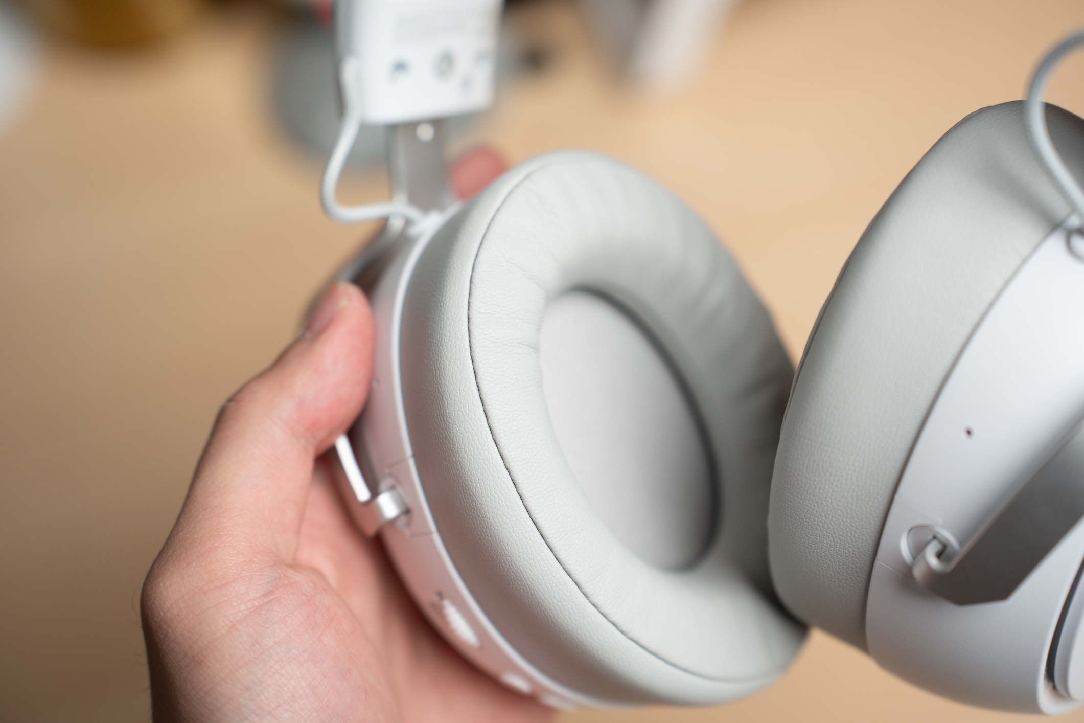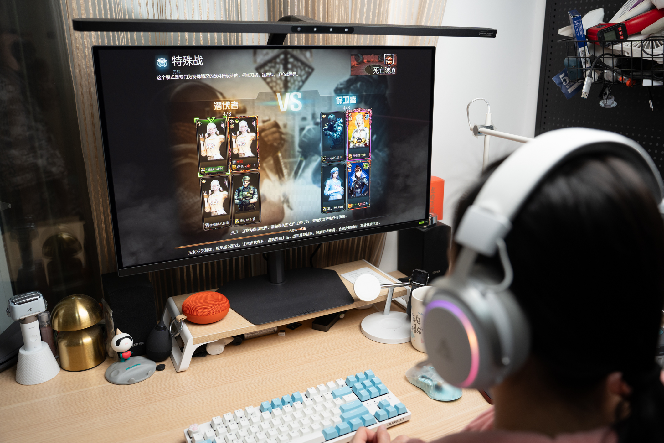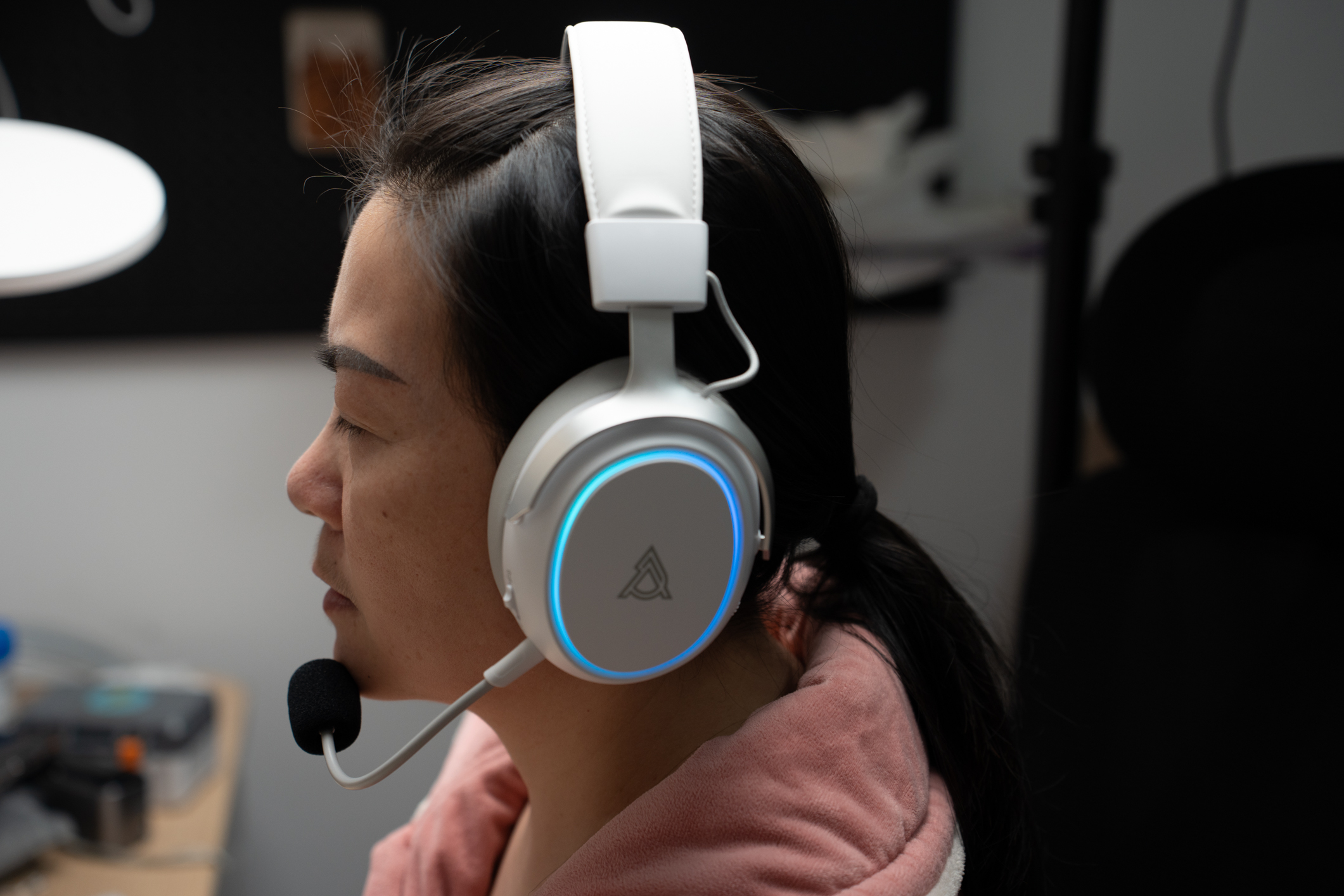 佩戴舒适度贴合日常,久戴无压力。耳机针对亚洲人头型优化,采用U型悬浮头梁设计,支持多档位伸缩调节,阻尼适中,佩戴时能贴合头部曲线,避免头顶压迫感。椭圆形耳罩可完整包裹耳朵,避免夹耳尴尬,蛋白皮耳罩亲肤细腻,内部填充透气记忆棉,实测连续4小时游戏佩戴,耳朵无闷热感,眼镜党也不会出现耳罩挤压镜腿的不适。耳机不带麦克风实测重量约337g,长时间佩戴不会有负重感。