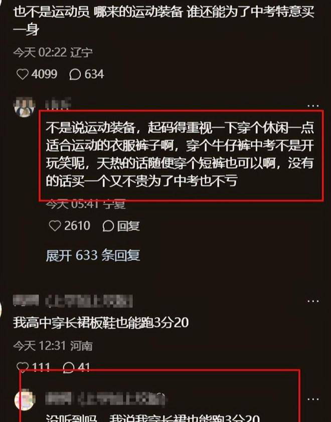 “佛系派”网友:何必上纲上线“我当年穿校服裤跑出全校第三,重要的是体能,不是裤子!”——网友@体育老师老张这部分声音强调“实力至上”,认为过度关注外在是教育内耗。他们晒出“反例”:某农村中学学生赤脚跑出满分,穿舞蹈鞋跳远的艺考生打破纪录。