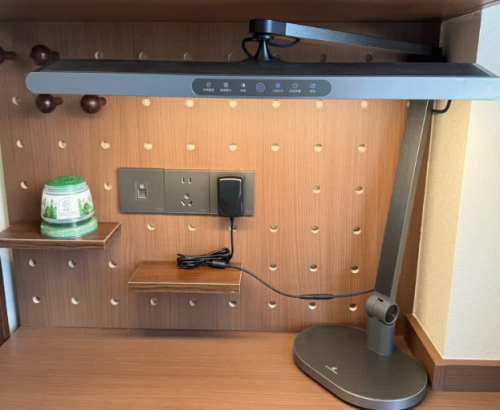 孩视宝OP58护眼台灯的灯体用铝合金和ABS塑料搭配做的,整体挺稳固,底座放在桌上稳当,不容易倾倒。它的灯头是50厘米的长条形,采用直发光方式,光线能轻松覆盖1.2米的桌面。中心照度有1470lux,亮度比较足,显色指数达到Ra98,能准确还原书本、文具的真实颜色,日常看书、写字的需求都能满足。灯臂支持一定角度调节,能根据自己的使用习惯调整光线方向,还算灵活。不过它的缺点也挺明显,毕竟采用的是直发光,直接盯着光源看会觉得刺眼,使用的时候得特意留意调整角度。