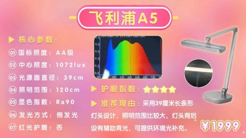 4.飞利浦A5(推荐指数:⭐⭐⭐⭐)核心亮点:采用39厘米长条形灯头设计,照明范围比较大,外观采用银色金属与ABS材质搭配,灯头背后设有辅助背光,可提供环境光补充。