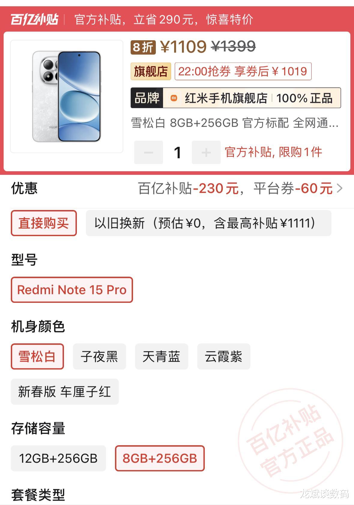 总的来说,红米Note 15 Pro的魅力并不是某一项配置特别夸张,而是整体体验的均衡与踏实,它的屏幕够好看、够护眼,性能够流畅、够省电,电池够大、够安心,拍照够清晰、够稳定,机身够耐用、够放心,它没有用华而不实的噱头来吸引眼球,而是把每一项核心体验都打磨到位,如果你正在寻找一款能陪你高强度使用、能随手拍出好照片、能抗摔耐用的机型,就红米这款机型还是很值得入手,而就价格上如今也是很亲民了,参考到如今电商平台中的售价,已经是跌到了1109元的价格了。