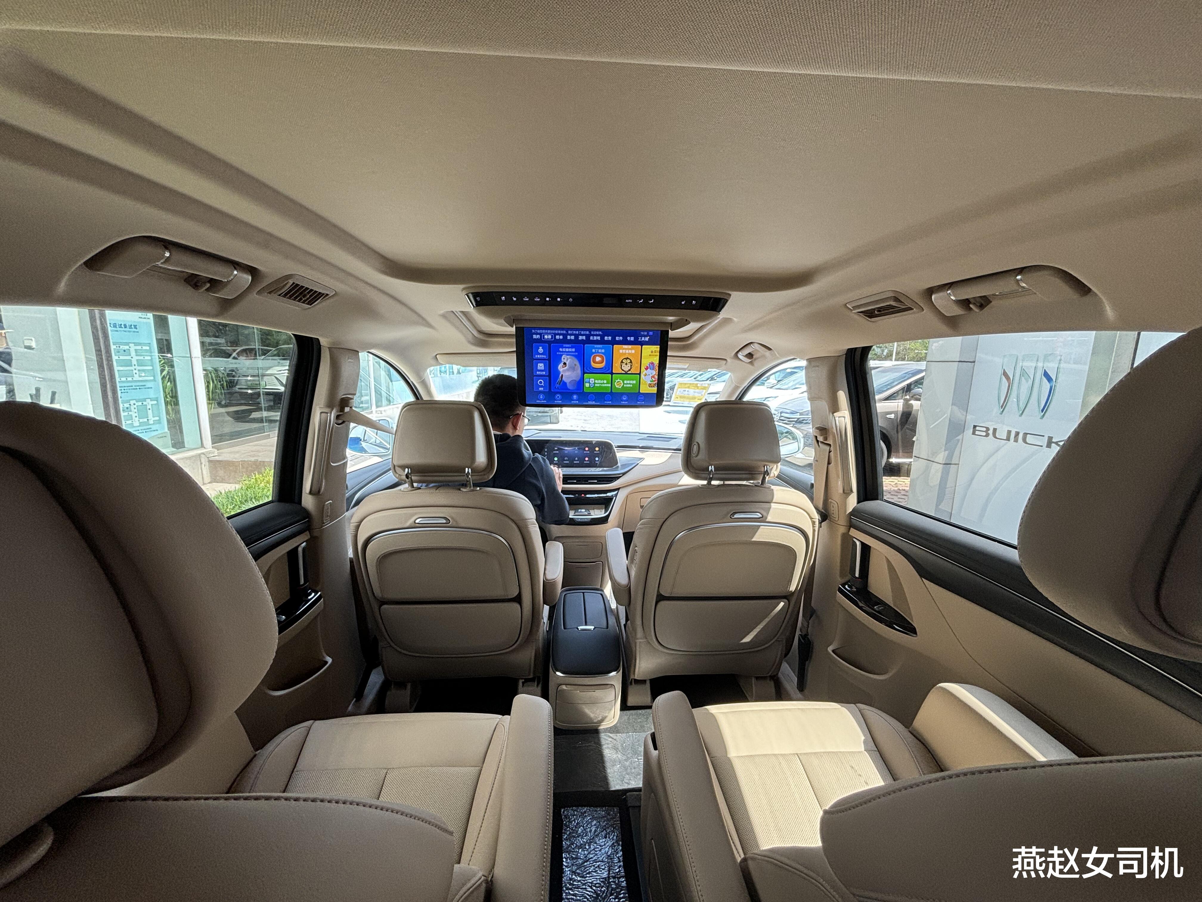 内饰与上一代GL8 ES陆尊类似,多层次感的环抱式中控台上悬浮双12.3英寸曲面屏,下方配备灰色饰板。而贯通式前排地板后方为较低的储物箱,因此前排座椅还配备独立扶手,并支持电动调节/通风/加热等功能。不过,GL8陆尚将采用家族最新四辐式多功能方向盘+电子怀挡,而原换挡杆区域改为手机无线充电面板。此外还将配备电动天窗、AI大模型语音助手、智驾系统等配置。
