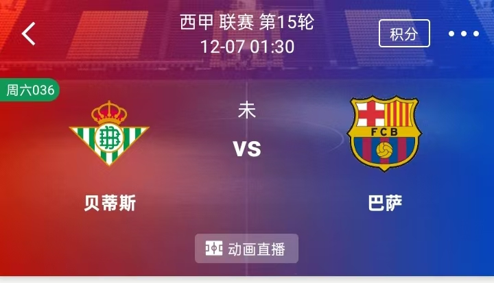 周六 036 西甲:皇家贝蒂斯VS巴塞罗那
