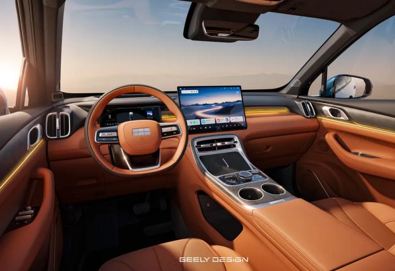 内饰方面,吉利银河M7采用大尺寸悬浮式中控屏,或采用Flyme Auto车机系统,扶手区域保留了物理按键与旋钮,多处的水晶与镀铬装饰体现出精致感,木纹饰板的应用增添了自然气息。