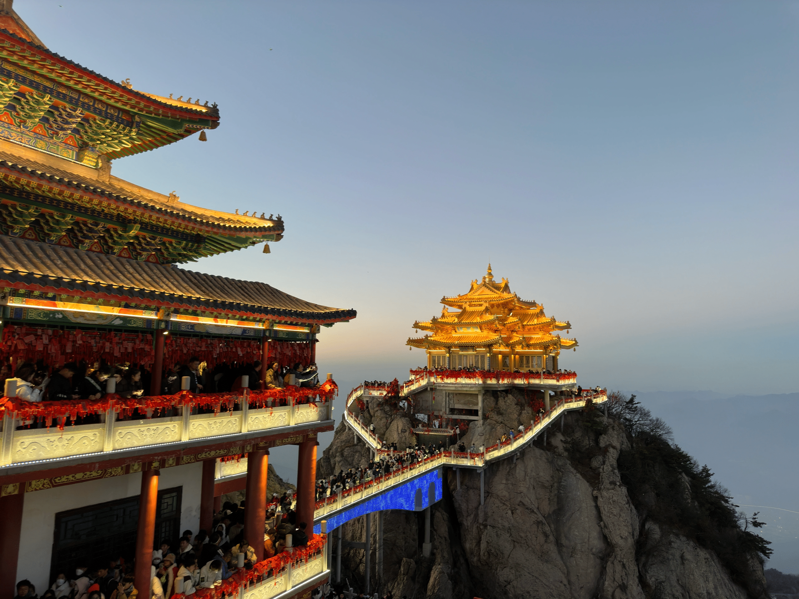 老君山的矛盾感,恰恰便是它的魅力所在:一边呢是那唐碑与明匾,在诉说着历史的厚重之感;一边呢是那索道站前排着队的游客,正刷着抖音。