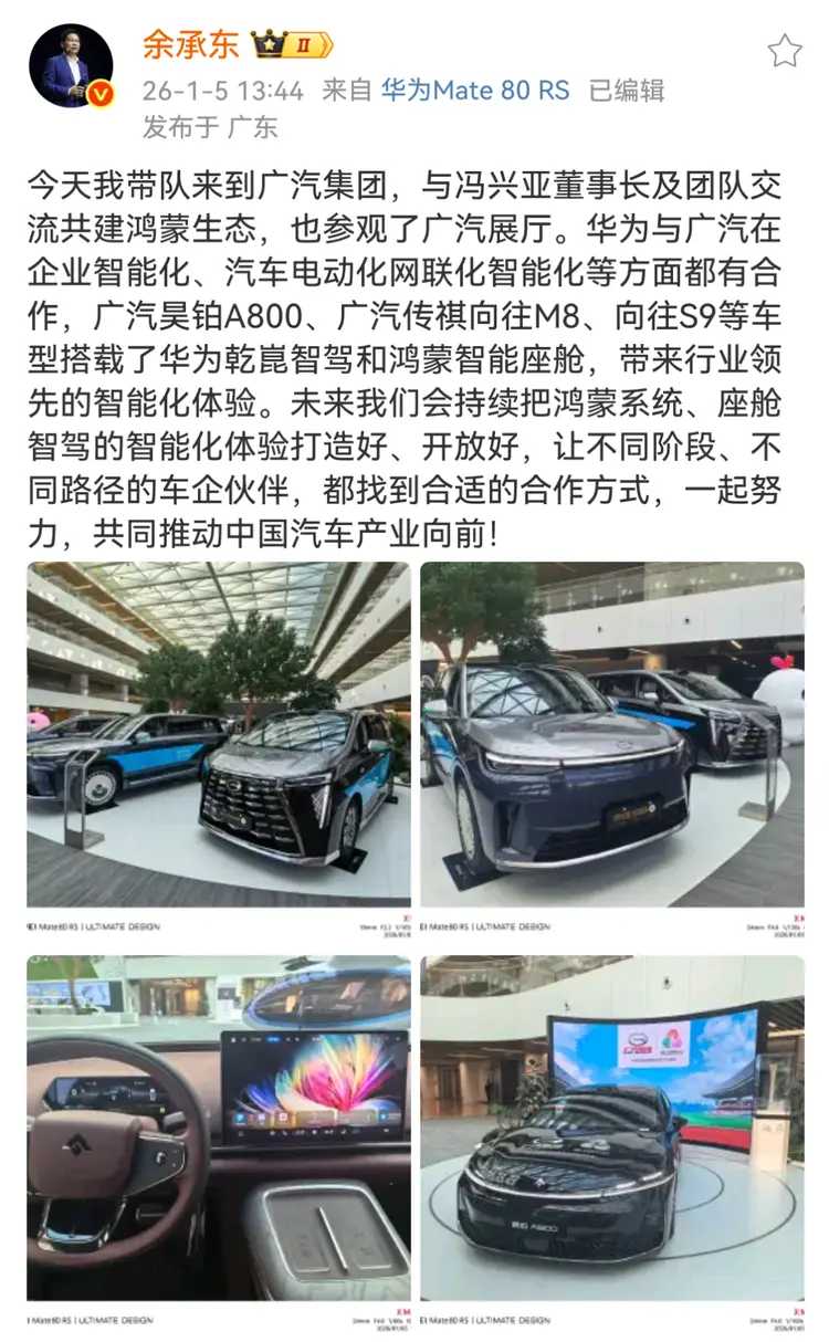 这次广汽明确表态,联合华为开发特色应用与服务,丰富鸿蒙生态下的全场景智能出行体验。