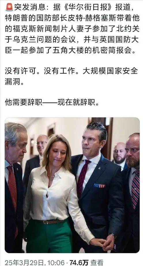 4月20日,美防长赫格塞思再度被曝光私自在私群聊中分享也门袭击的详尽情报。