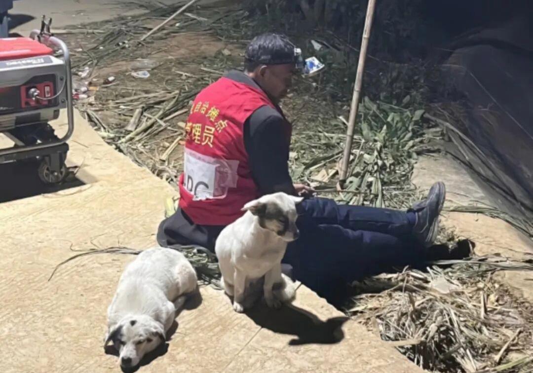 童鹏飞现在一点都笑不出来,每天累得嗓子沙哑,眼睛布满血丝,平均每天就睡两三个小时,家里的小狗也累得回家就呼呼大睡,给肉都不吃。
