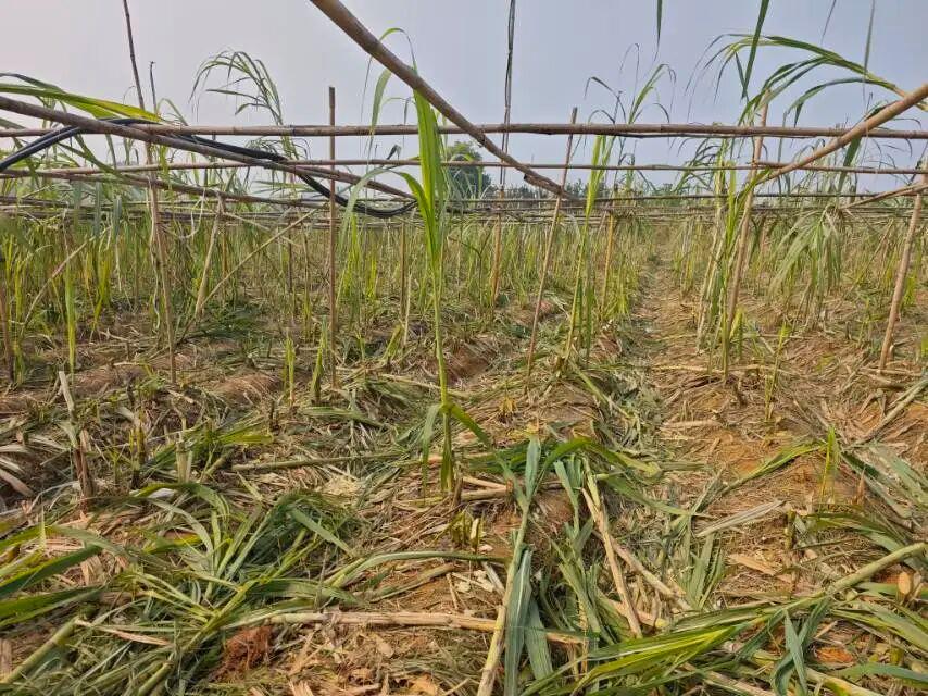 甘蔗地里到处是被随意丢弃的甘蔗,有的才啃了几口,有的粗细堪比手腕,品相好得很,却被扔在地上烂掉,每天用三轮车清理废弃甘蔗,都得拉满满一车,很多根本来不及收拾,最后只能白白扔掉或者免费送给游客。