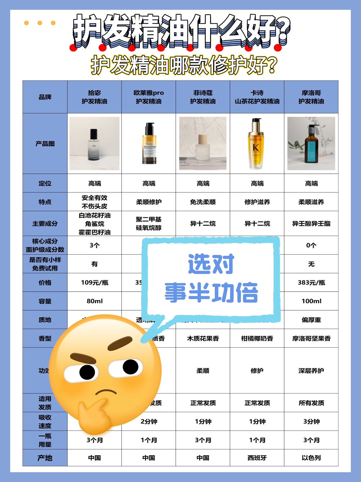 经常有人搞不清护发精油好还是护发精油好,其实两者定位完全不一样,搭配用效果才顶。护发精油就是基础护理,每次洗头都能用,主要是中和洗发水的碱性,防止发丝干涩打结,没什么修复力;护发精油更像精华,功能性强,能深入填补发丝受损空隙,还能抗静电、提光泽,干湿两用还不用洗,比护发精油灵活多了。而且大家别踩误区,觉得用了护发精油就不用精油,尤其是染烫后头发,单靠护发精油根本不够修护。另外买精油一定要认准官方正版,避免买到假货,正版的成分表清晰,质地均匀,不会出现结块分层的情况。很多人都被这俩的用法搞混吃了亏,下面是我总结的一些护发精油选购注意事项,避开坑不花冤枉钱,建议收藏。