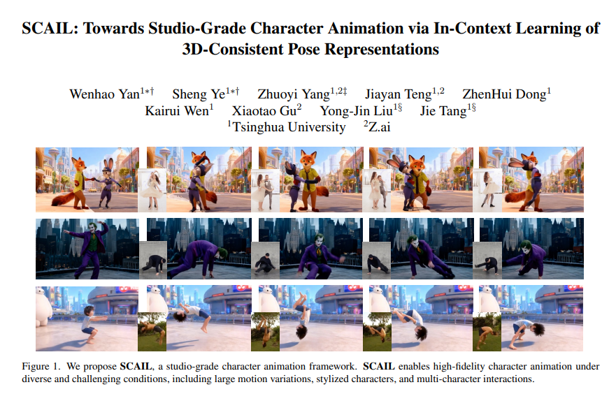 这个名为SCAIL的系统,就像一个超级厉害的"木偶师"。传统的木偶师需要用线或手来操控木偶的每一个动作,而SCAIL这个"数字木偶师"只需要看一眼你想要动起来的角色照片,再观察一段动作视频,就能让照片里的角色完美复制这些动作。更厉害的是,即使照片里的角色和视频里的人长得完全不一样——比如让一个卡通熊猫做芭蕾舞动作,或者让一个真人模仿动画角色的武打招式,SCAIL都能处理得游刃有余。