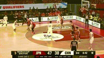 余嘉豪和柯克在篮下卡位,朱俊龙卡住原修太,保护了后场篮板