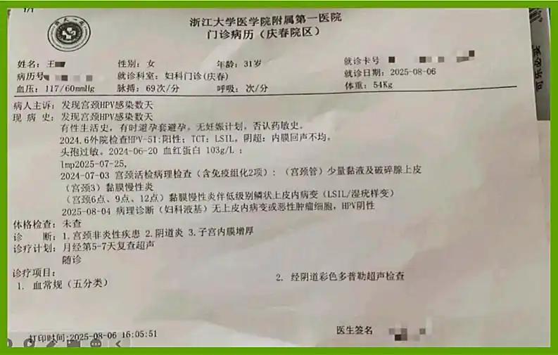他们两个在一起太频繁太混乱,王某身体发出警告,后来在浙江大学的医院检查,感染了HPV-51病毒。