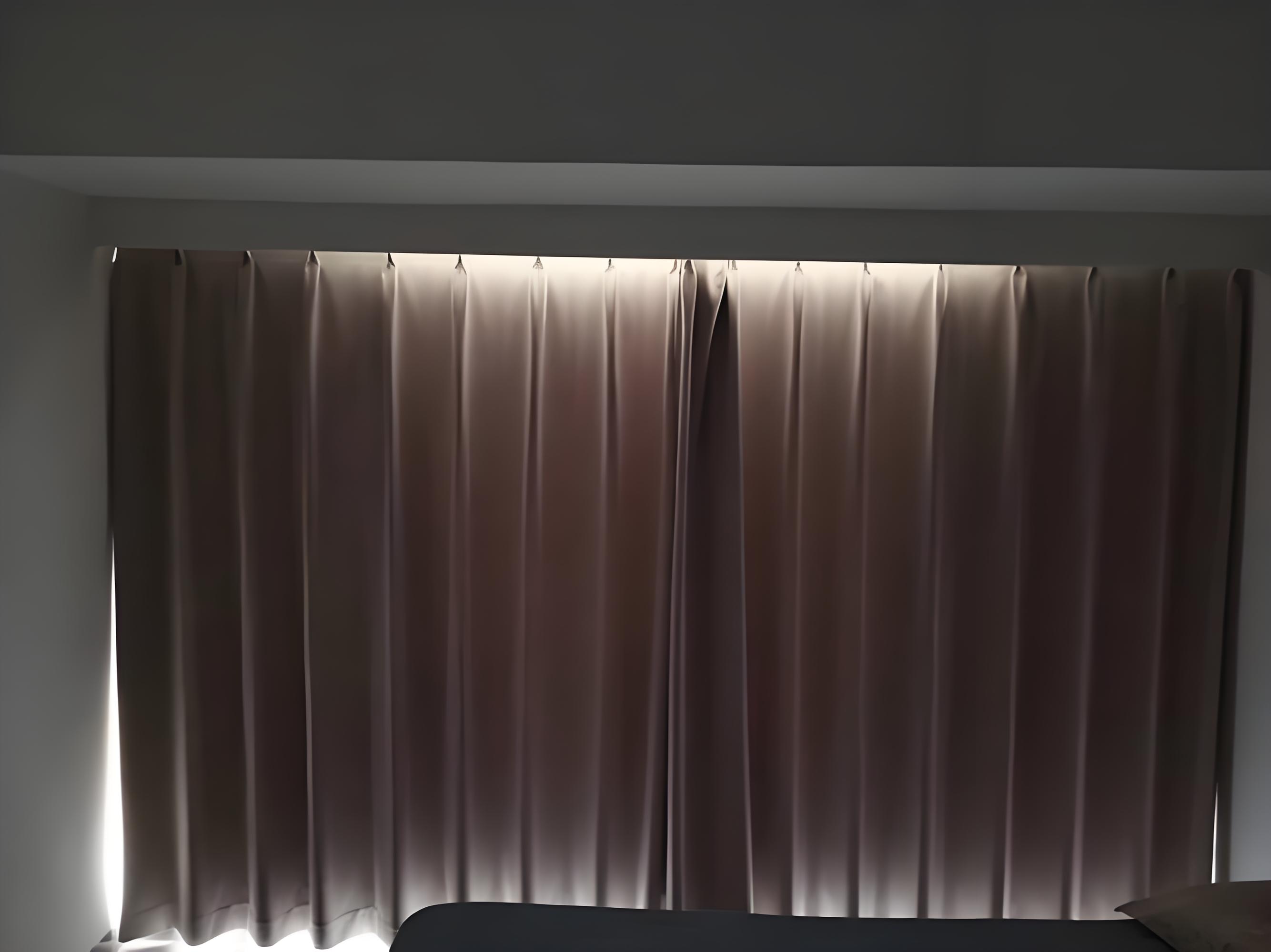 中波帘最核心的优势,还是它的遮光能力,真正做到飘窗窗帘全遮光、中波帘不漏光。它有一套完善的遮光系统,优化后的帘头和轨道,不用复杂的大型窗帘盒,搭配窄边窗幔就能挡住顶部漏光;核心专利滑车装置,能让窗帘闭合时完全咬合,中间不会留一道光缝,彻底杜绝漏光问题。
