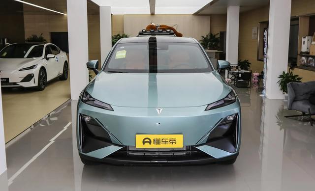 静态体验深蓝S07,首感运动气息强烈。车头倾斜设计增强动感,前照灯独特如回旋镖,引人注目。进气口包裹式设计,配梯形进气槽与磨砂黑扩散器,更显精致。