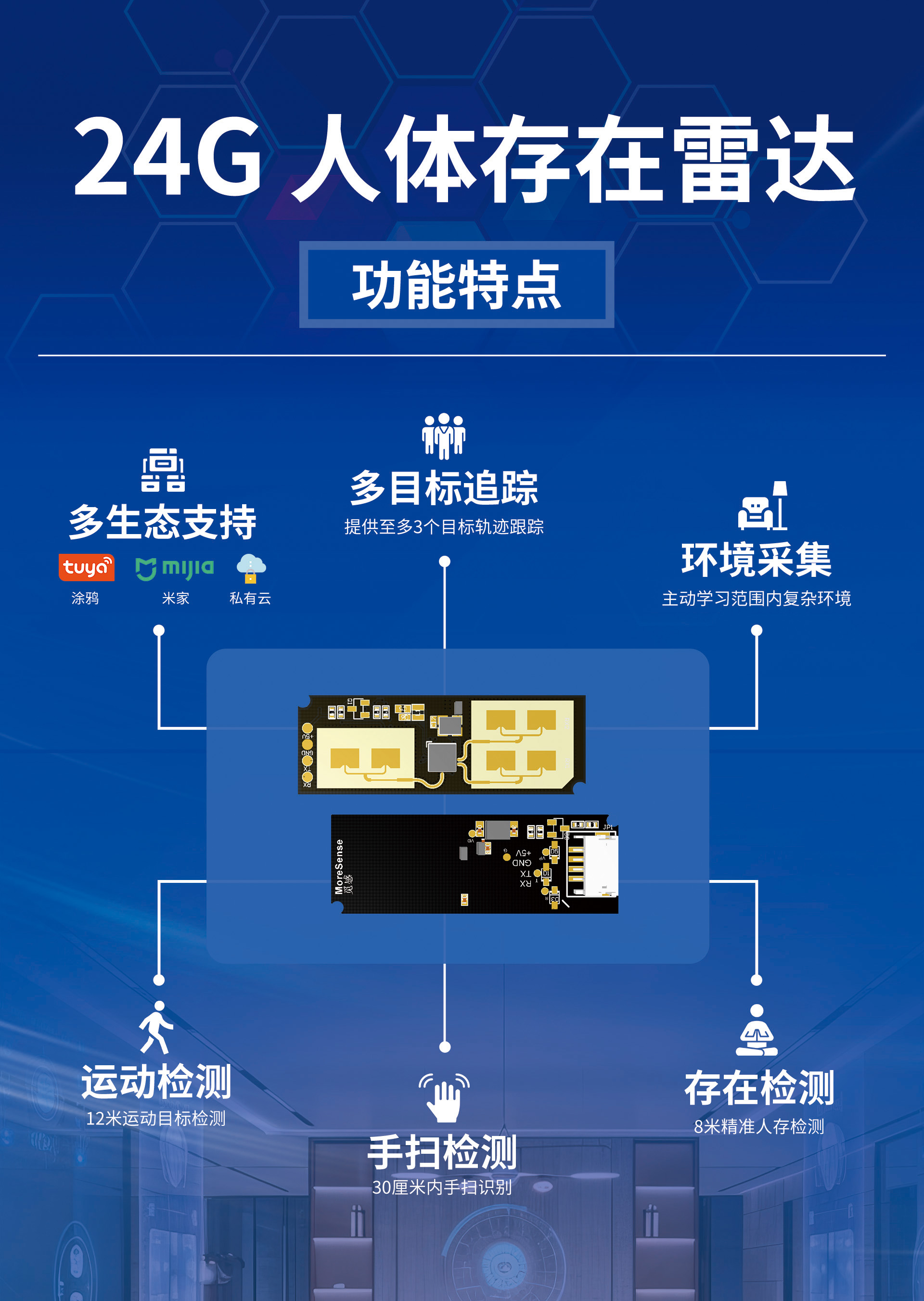 未来,随着算法优化、成本下降和应用场景的不断拓展,24G毫米波雷达技术将在智能家居、智能安防、智慧养老等更多领域发挥重要作用,为构建更加智能化的生活环境提供技术支撑。"