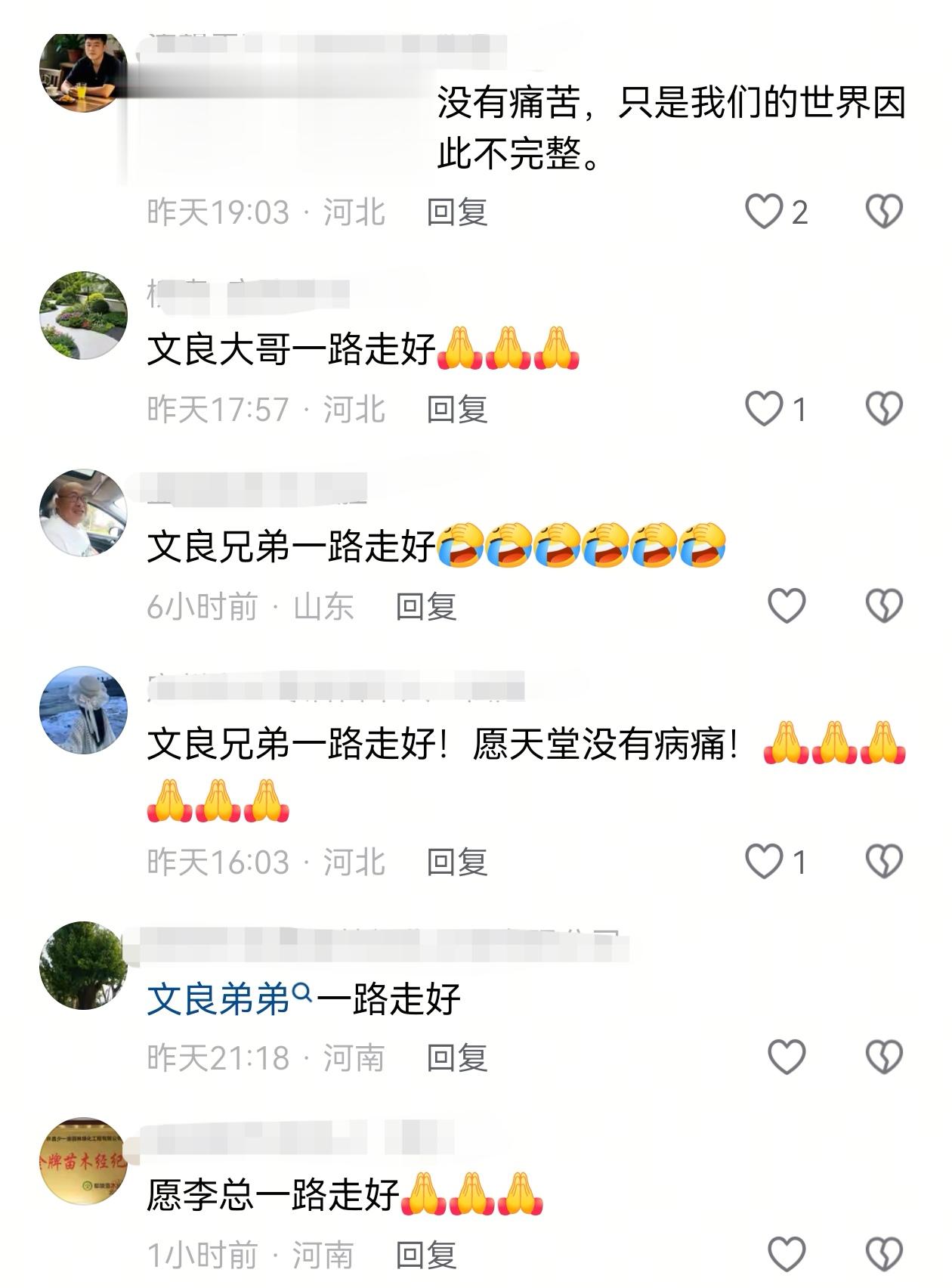 李文良的兄弟们都不太愿意提及原因,都只回应是“意外”,但评论区有很多人推测,是不是常见的心梗、脑梗之类的,否则还有什么意外呢?