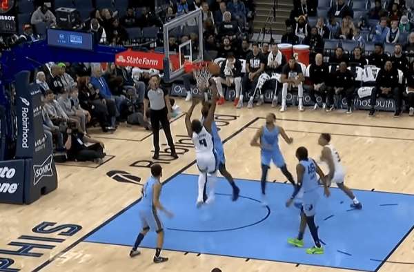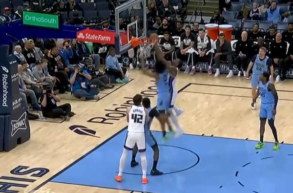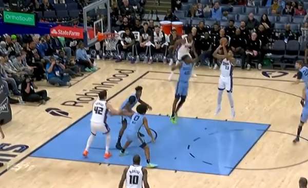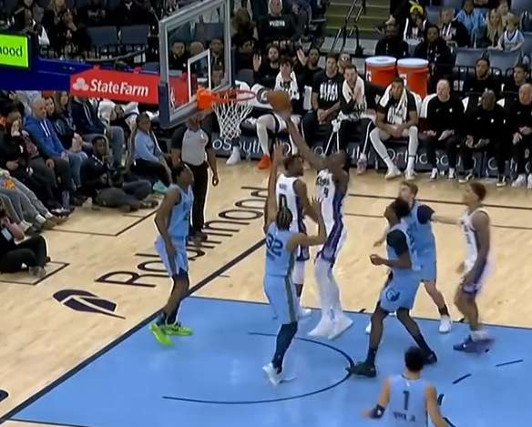 高高跃起空中撞飞威尔斯掠夺到前场篮板,