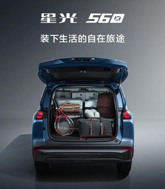 装载能力方面,星光560的表现同样亮眼。常规状态下,后备厢容积就能满足婴儿车、行李箱等日常物品的存放需求;将后排座椅按40:60比例放倒后,能形成纯平的超大载物空间,可扩展至1945L,露营装备、大件家居用品等都能轻松容纳。此外,车内遍布多处人性化储物空间,门板、中控台、扶手箱等位置的储物格大小适中,手机、水杯、证件等小物件都能找到存放位置,大幅提升日常使用便利性。同时,该车标配车顶行李架,可额外固定行李箱、露营装备等,进一步拓展装载能力,适配户外露营等多元场景。