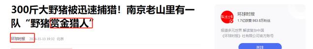 环球时报:300斤大野猪被迅速捕猎!南京老山里有一队“野猪赏金猎人” 2024-11-13