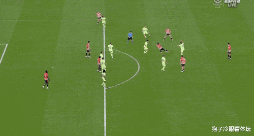 第17分钟,巴萨前场抢断后打出一连串精妙配合,巴尔德倒三角传中,加维包抄破门。