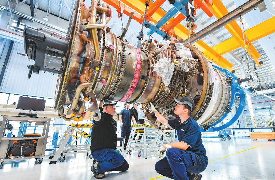 近日,在位于海口空港综保区的海南自贸港一站式飞机维修产业基地,海口美兰空港吉耐斯航空发动机维修工程有限公司的工作人员正在检修航空发动机。 海口日报记者 苏弼坤 摄
