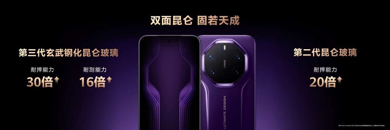 采用高亮钛玄武机身,融合钛金属的坚韧与玄武架构的可靠,在提升耐用性的同时保持了出众质感,背部首创5D昆仑玻璃后盖,融合芯片级LDI激光成像技术与蚀刻工艺,雕琢出微米级精密纹理,正面搭载第三代玄武钢化昆仑玻璃,实现“双面昆仑,固若天成”的全面保护,这不仅是材质的堆叠,更是对“大师”匠心与时间韧性的致敬。